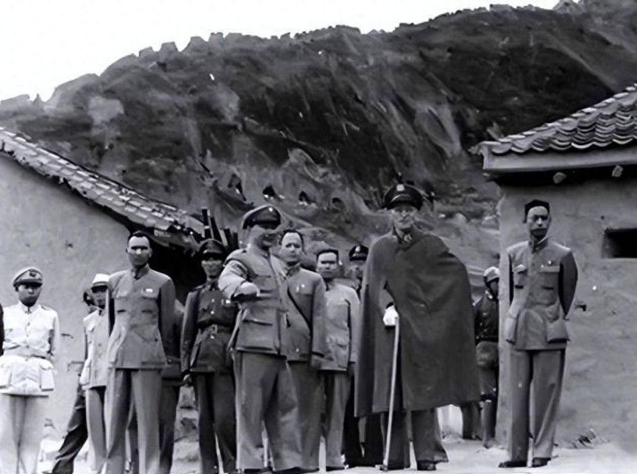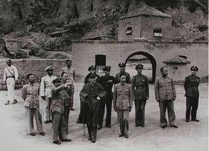 这张照片便是蒋介石参观窑洞的照片,可以看得出,他的脸上没有半点笑容。